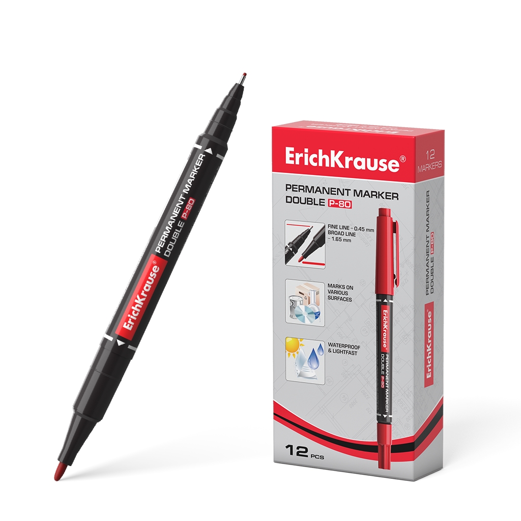 Универсальный перманентный маркер и линер "два-в-одном". Подходит для письма на любой поверхности, в том числе на CD/DVD дисках и OHP пленке. Имеет круглую форму корпуса и цветные колпачки, один из них с клипом. Цвет колпачков соответствует цвету чернил. Два наконечника: пулевидной формы и утонченный игольчатый наконечник Fine tip. Толщина линии пулевидного наконечника - 1.5 мм, утонченного игольчатого наконечника - 0.4 мм. Чернила на спиртовой основе, светостойкие, водостойкие. Не токсичны. Не содержат ксилол, толуол. Срок годности 5 лет.