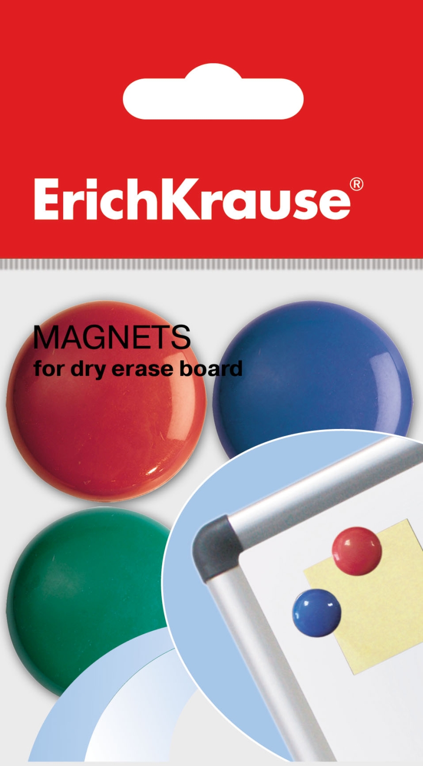 Магниты предназначены для закрепления информации на магнитно-маркерной поверхности доски, а также других металлических поверхностях. Пластиковый корпус. Диаметр корпуса - 30 мм. Диаметр магнита - 15 мм.