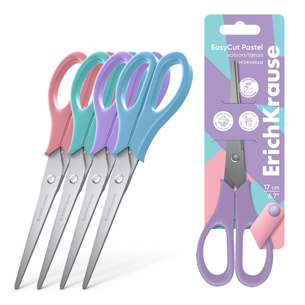 Ножницы с лезвиями из высококачественной нержавеющей стали с улучшенной двойной заточкой, повышающую легкость резки при максимальном количестве листов. Ручки классической формы изготовлены из ударопрочного пластика. Товар поставляется в нескольких вариантах цвета/дизайна без возможности выбора.