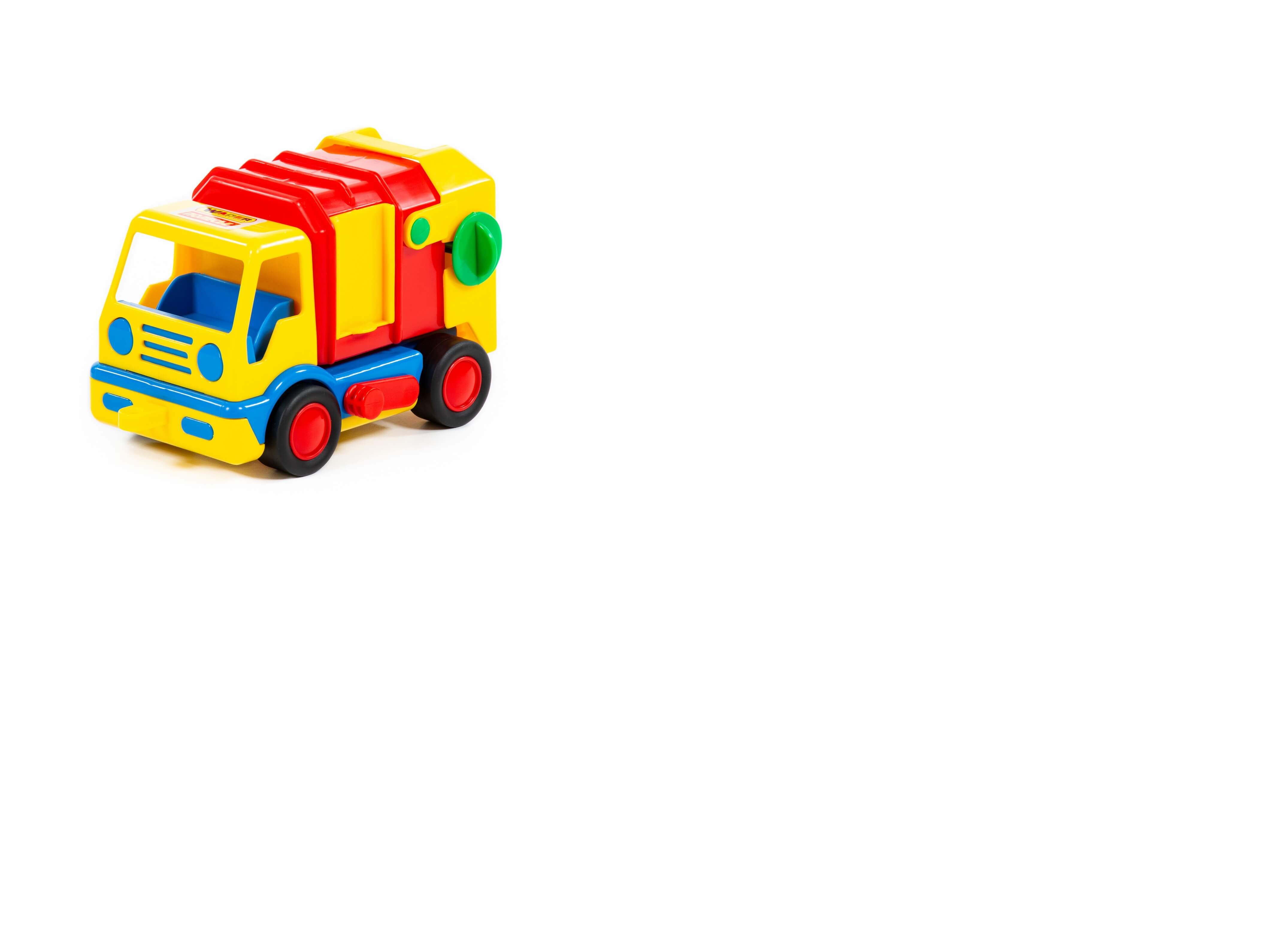 Стильные, удобные и небольшие машинки для малыша от фабрики «Полесье» — это серия «Базик». Они отличаются компактным размером, продуманной эргономикой, расцветкой и функционалом. Автомобиль коммунальный предназначен для сбора мусора и оснащён кузовом- контейнером. Контейнер подымается, если потянуть за рычажок в основании кузова. Позади контейнера имеется платформа с корзиной для сбора мусора. С помощью специального механизма, содержимое корзины легко загрузить в мусоровоз (нужно покрутить круглую рукоятку). Мусор можно загружать и через окно-отверстие в контейнере. Колёса автомобиля — с резиновыми накладками, что обеспечивает практически бесшумное катание игрушки на любой поверхности. Наличие буксировочной петли на переднем бампере автомобиля позволяет возить машинку за собой на верёвочке