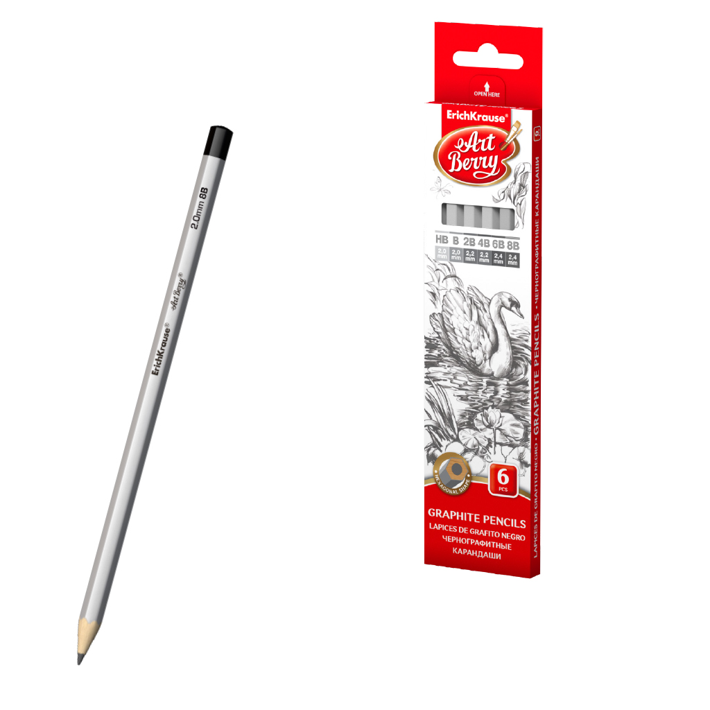 Классические шестигранные чернографитные карандаши различной степени твердости. Рекомендуются для выполнения скетчей, графических зарисовок и художественных работ любой сложности. Грифель не царапает бумагу и не крошится. Насыщенность каждого графитового оттенка зависит от степени его жёсткости. Специальная пропитка древесины и сплошная проклейка грифеля обеспечивают высокую ударопрочность. Мягкая древесина и идеальная центровка грифеля гарантируют легкую заточку с экономным расходом карандаша.