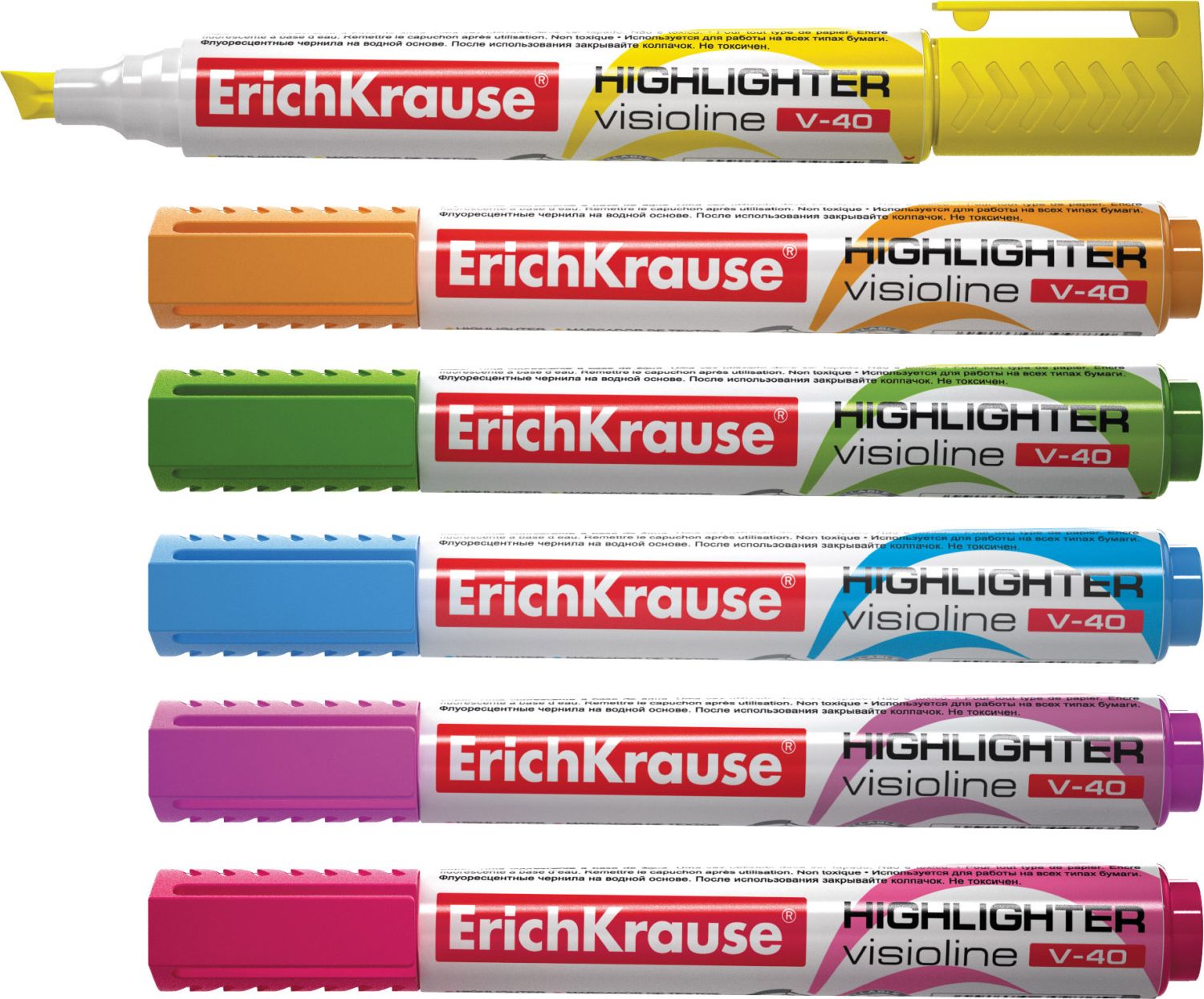 Текстмаркер предназначен для работы на всех типах бумаги, в том числе на бумаге для факсов и копировальных машин. Предназначен для стационарной работы в офисе и дома, удобен для мобильного использования. Имеет круглую форму корпуса и цветной колпачок с клипом. Цвет колпачка и заглушки соответствует цвету чернил. Скошенный пишущий узел позволяет варьировать ширину письма. Широкая часть наконечника 5.2 мм удобна для выделения текста, а тонкая 0.6 мм – для подчеркивания. Флуоресцентные чернила на водной основе быстро высыхают после нанесения и не оставляют следов на обратной стороне бумаги за счет тонкого и равномерного нанесения. Срок годности 5 лет.