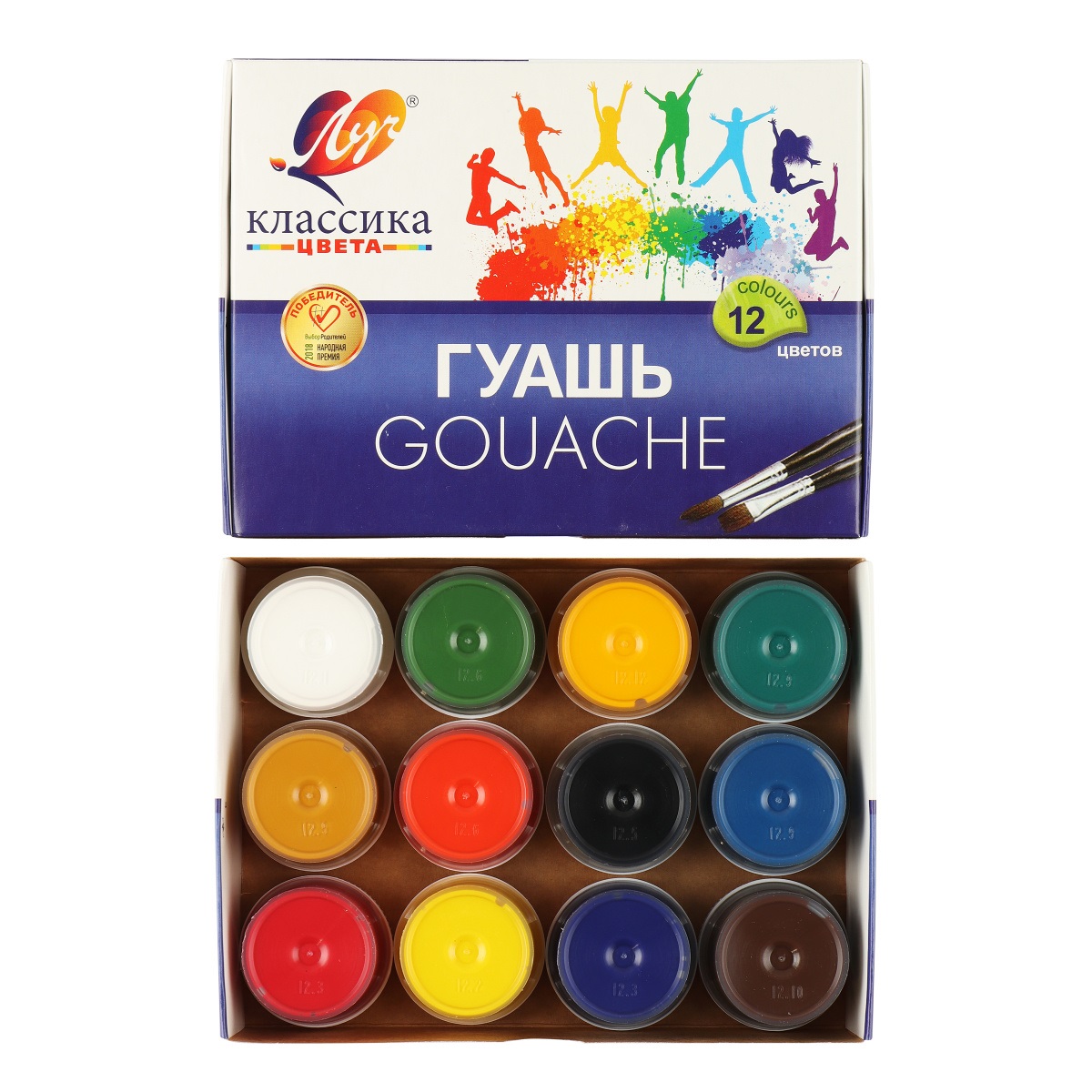 Гуашь для детского творчества, для выполнения художественно-декоративных и оформительских работ. Краски изготовлены на основе натуральных компонентов и высококачественных пигментов. На крышке имеется яркая этикетка с указанием цвета краски - удобство для покупателя, который сразу понимает, какой цвет ему нужен. Краске присущи яркие, красивые, чистые цвета, которые хорошо смешиваются, позволяя получать новые чистые цвета и оттенки. Гуашь имеет отличную укрывистость, при высыхании не выцветает, приобретает бархатистую поверхность. Гуашь легко смывается с рук и одежды и не имеет неприятного запаха. Безопасна для детского творчества, что подтверждено сертификатами (ЕАС).